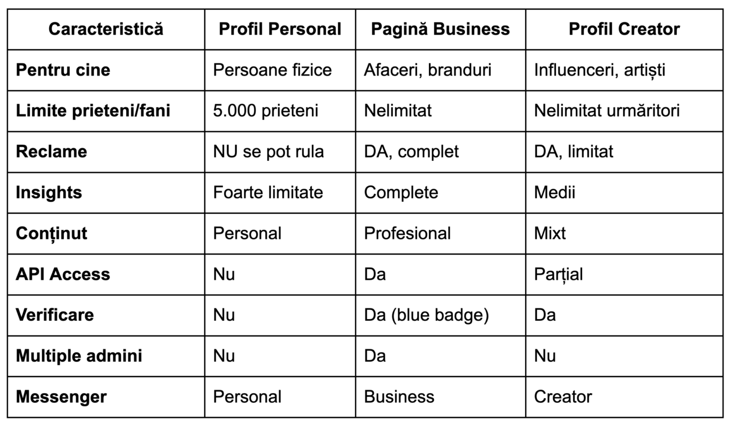 🔍 Diferențele Esențiale: Profil Personal vs. Pagină vs. Profil Creator